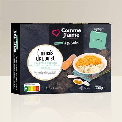 Un émincé de poulet fondant, nappé d'une sauce onctueuse aux oignons et à la ciboulette et accompagné d'une purée fondante de patate douce et carottes. Un plat coloré et réconfortant, aux saveurs légèrement sucrées. Viande 100% française en savoir +