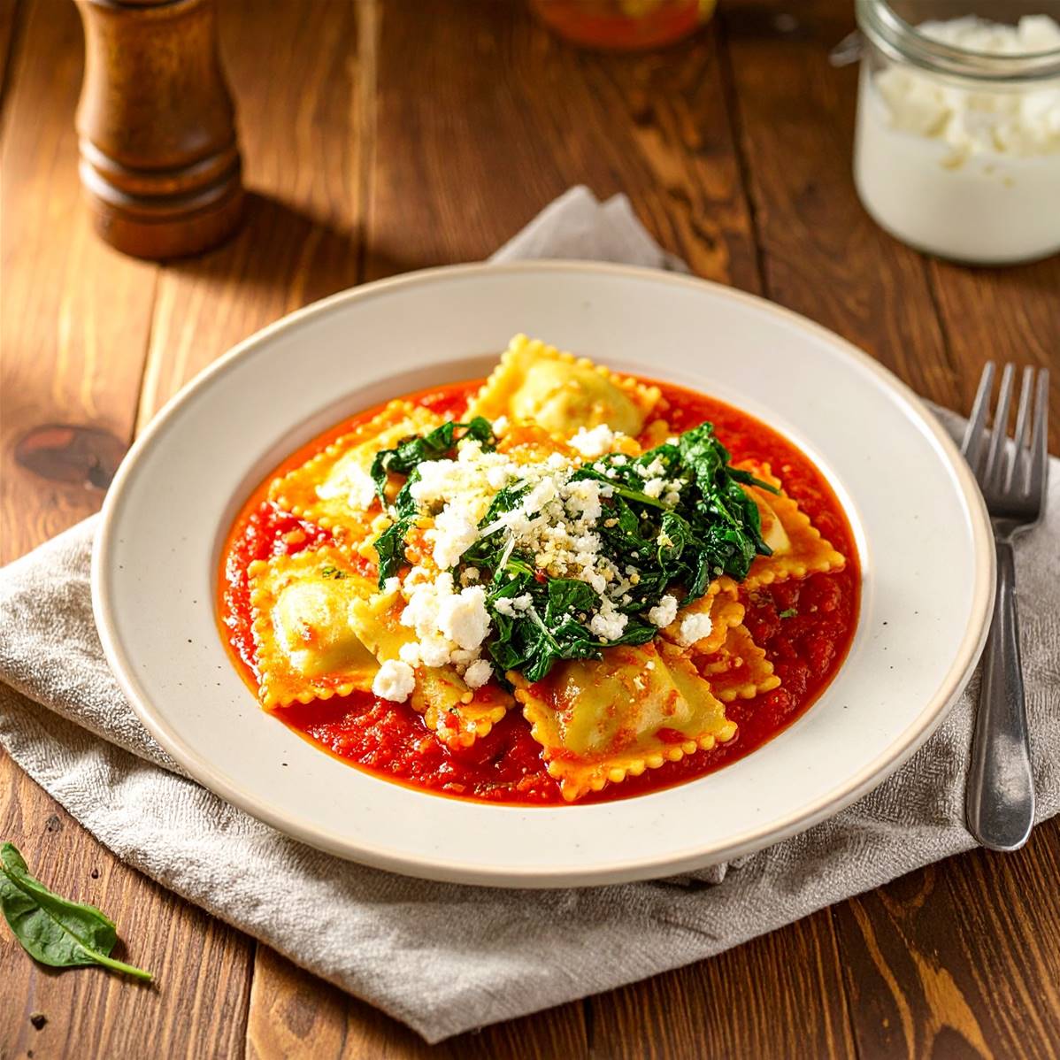 Des ravioles généreusement farcies à la ricotta et aux épinards, nappées d'une sauce tomate onctueuse parfumée au basilic et parsemées de Grana Padano. Un plat réconfortant et gourmand pour tous les amateurs de pâtes !