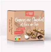 Des barres au savoureux mélange de flocons d'avoine, de chocolat et de noix de coco. Riches en protéines végétales et en fibres, elles sont idéales pour une pause l'après-midi, équilibrée et gourmande.