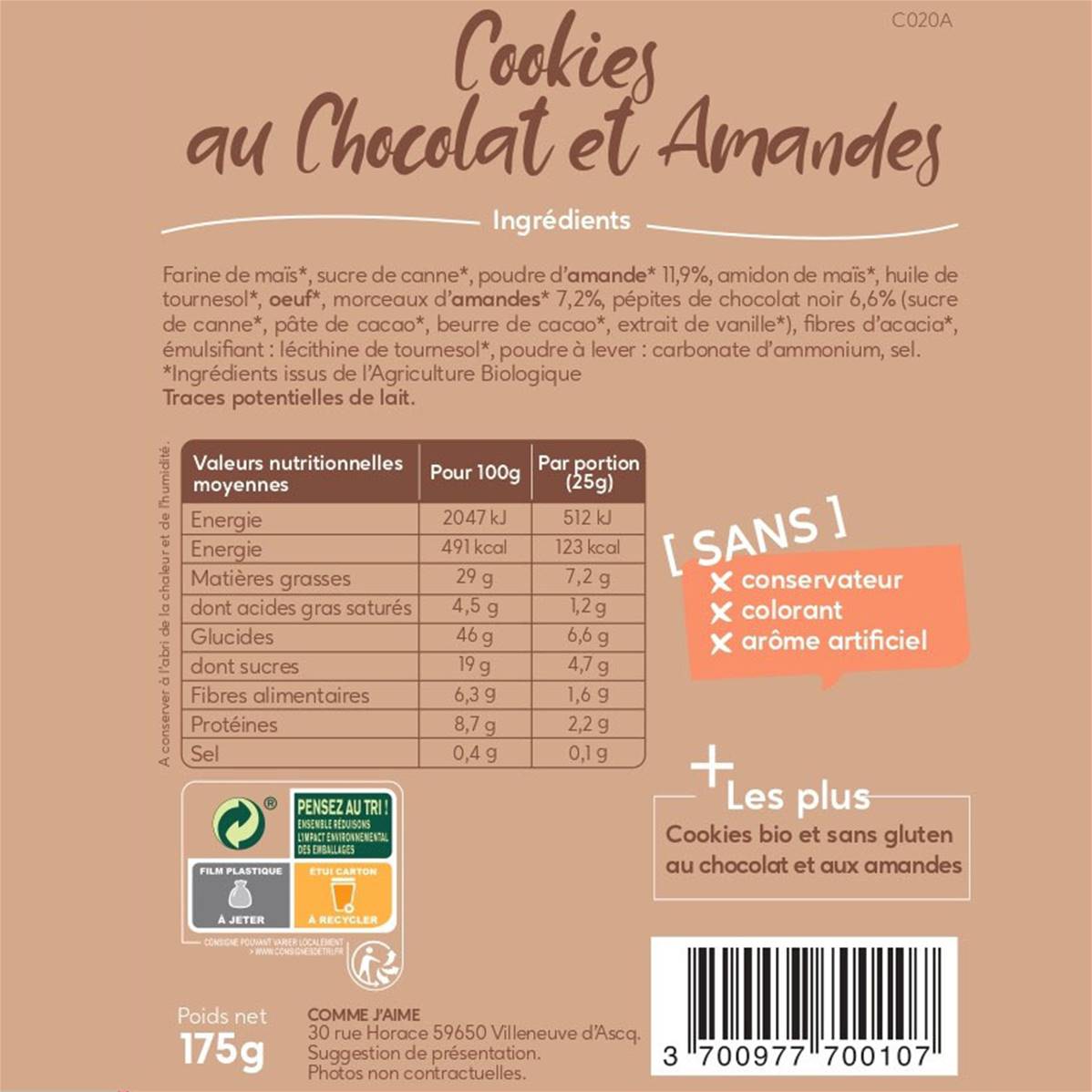 Cookies au chocolat et amandes sans gluten bio