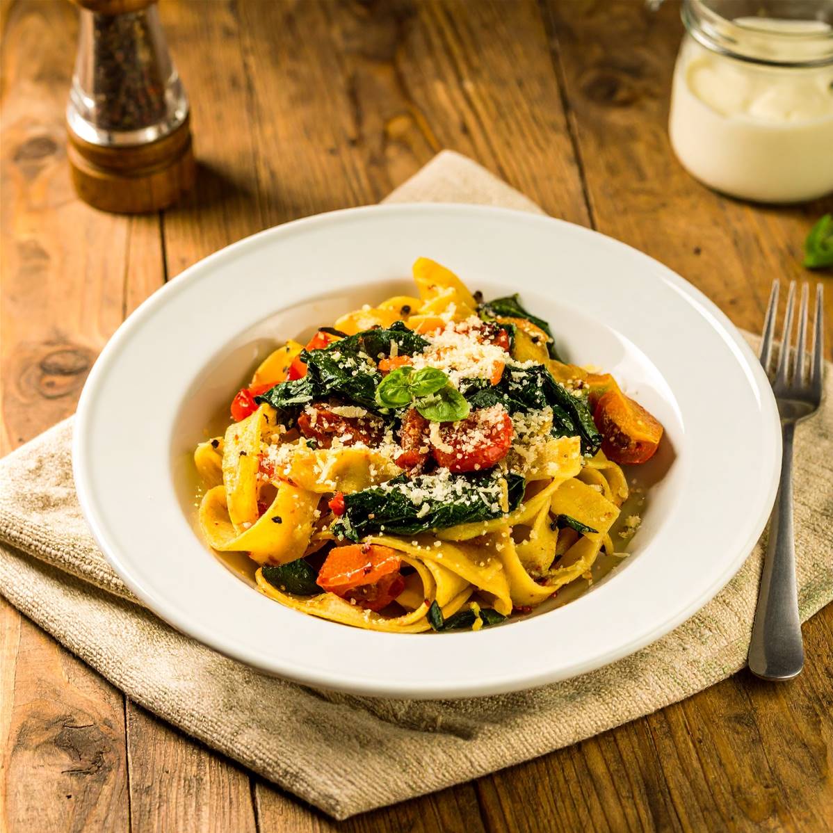 Laissez vous tenter par de délicieuses pâtes lasagnettes nappées d’une sauce onctueuse au parmesan et basilic. Courgettes grillées, tomates, épinards hachés et carottes apportent couleur et saveur à ce plat végétarien complet, gourmand et équilibré !