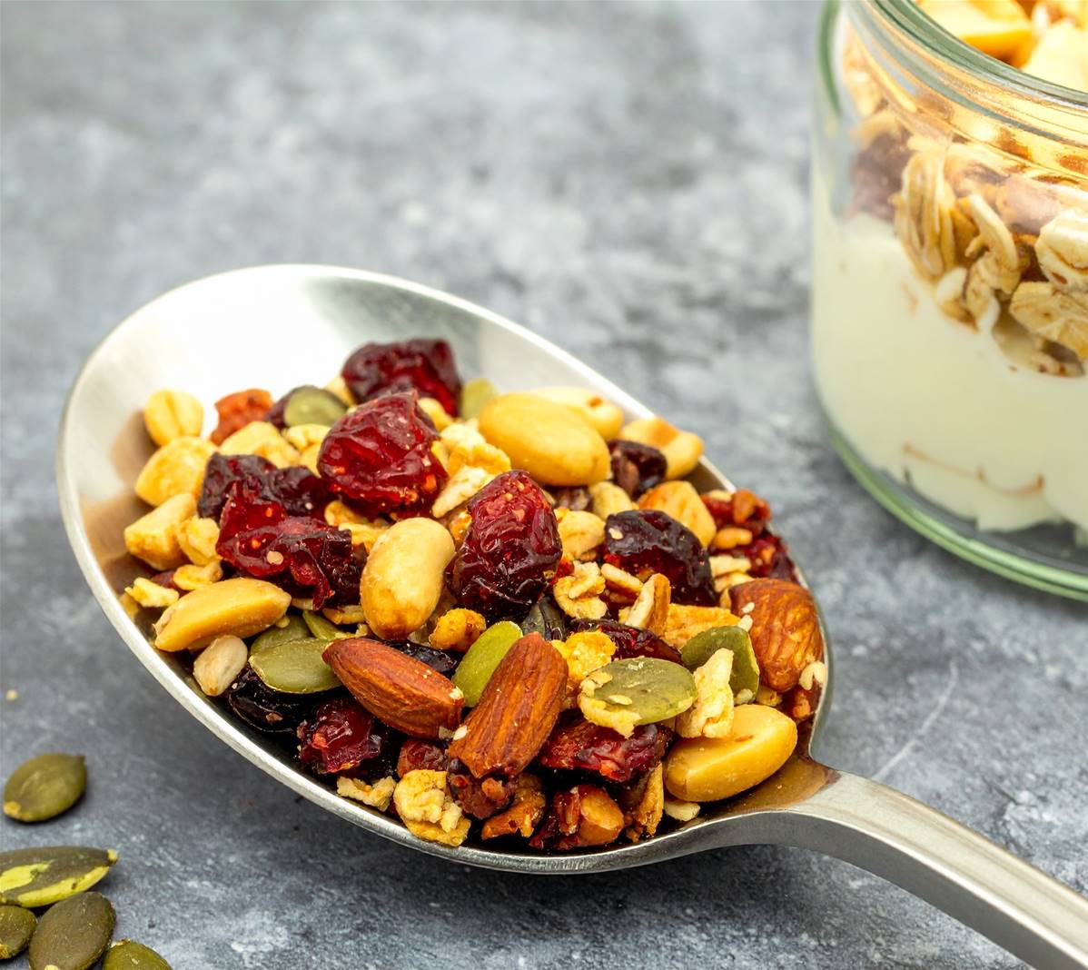 Laissez vous tenter par ce délicieux mélange croquant et moelleux : cranberries, graines de soja et de courges, cacahuètes,