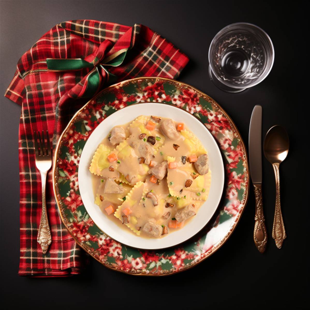 Régalez vous avec nos raviolis farcis aux girolles nappés d'une sauce crémeuse agrémentée d'un touche de parmesan et de tendres morceaux de porc.