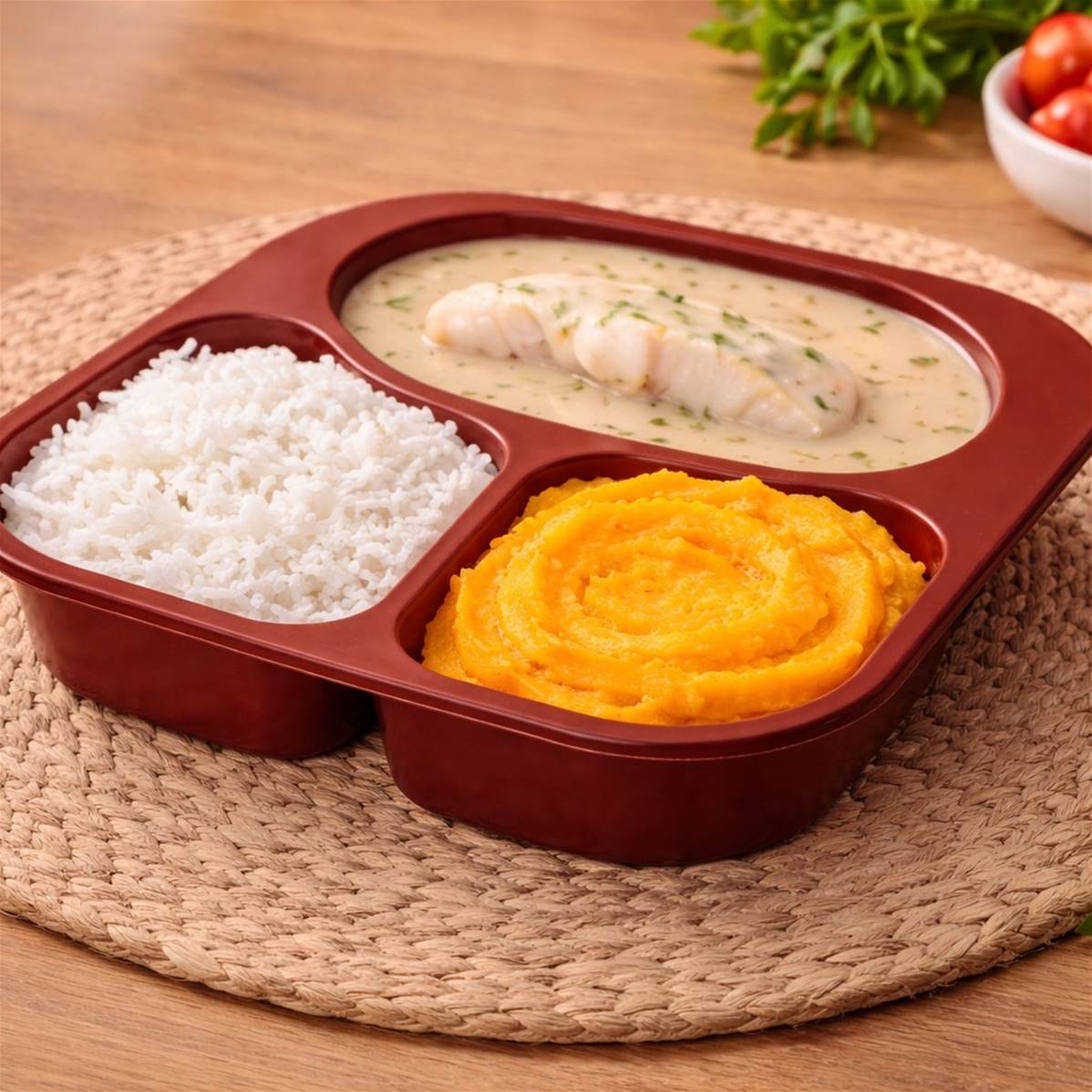 Un trio minceur composé de merlu tendre délicatement nappé d’une sauce onctueuse à l’estragon, d’une purée de carottes gourmande et de riz. Des protéines, des féculents et des légumes, que vous pouvez manger séparément pour une expérience de dégustation optimale ou bien mélangés. Un plat complet et équilibré, riche en saveurs, idéal pour un repas gourmand tout en prenant soin de soi !