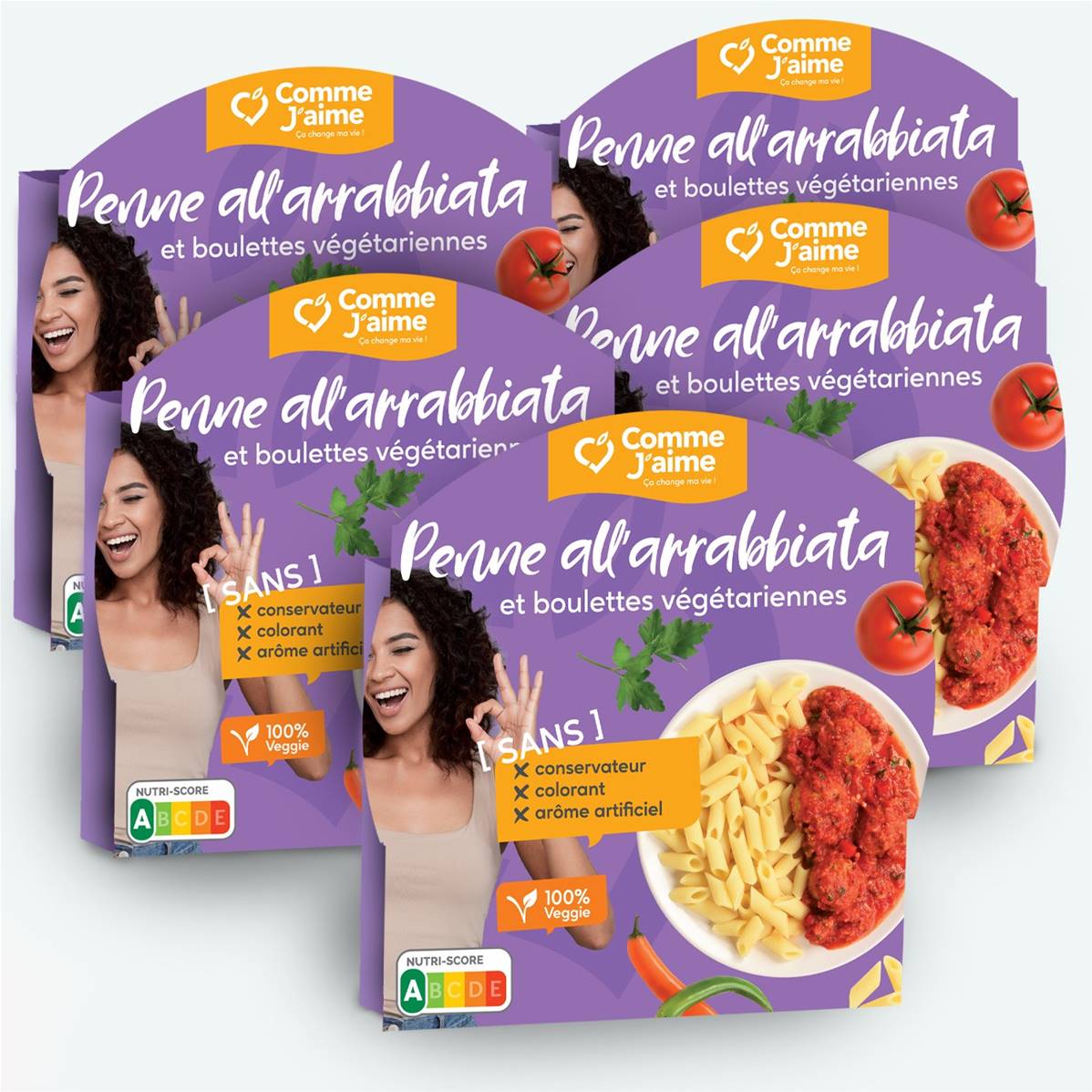 Pack 5 plats PENNE ALL'ARRABBIATA ET BOULETTES VÉGÉTARIENNES